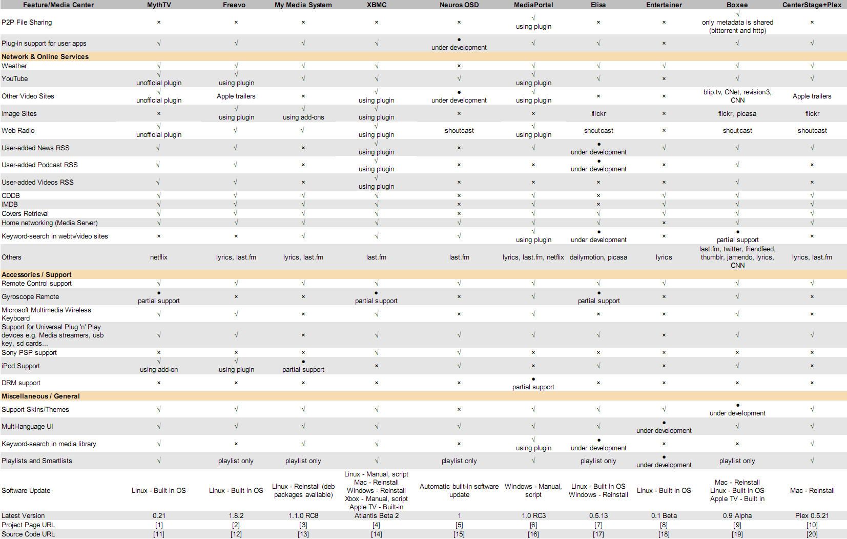 Como indican nuestros compañeros de MuyLinux, esperábamos más tras ver de qué iba el tema, pero la verdad es que la comparativa que han elaborado en un organismo llamado Telematics Freedom Foundation es algo decepcionante. La idea es fantástica, y consiste en comparar 10 proyectos Open Source que tienen como objetivo ofrecer el Media Center más completo para los usuarios.