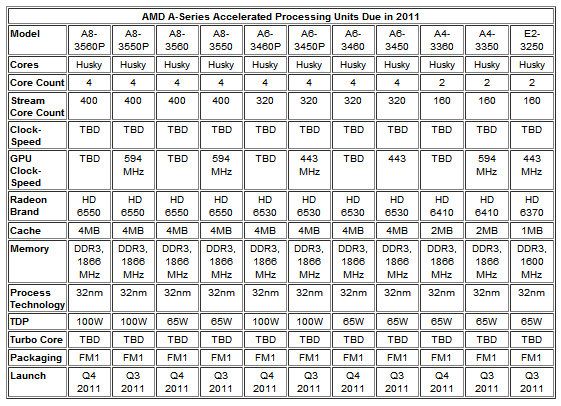 Entre medias llegará el lanzamiento de las APU Fusion serie ‘Llano’ destinadas a ordenadores de escritorio y en once modelos que puedes ver en el siguiente gráfico: