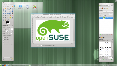 openSUSE siempre se ha caracterizado por tener en cuenta el impacto visual de lo que ofrece con cierta coherencia. Se nota en los lanzadores de aplicaciones como GIMP, LibreOffice, KMail, o en la estética a la par que eficiente integración de las herramientas con el entorno, sin importar cuál sea éste.
