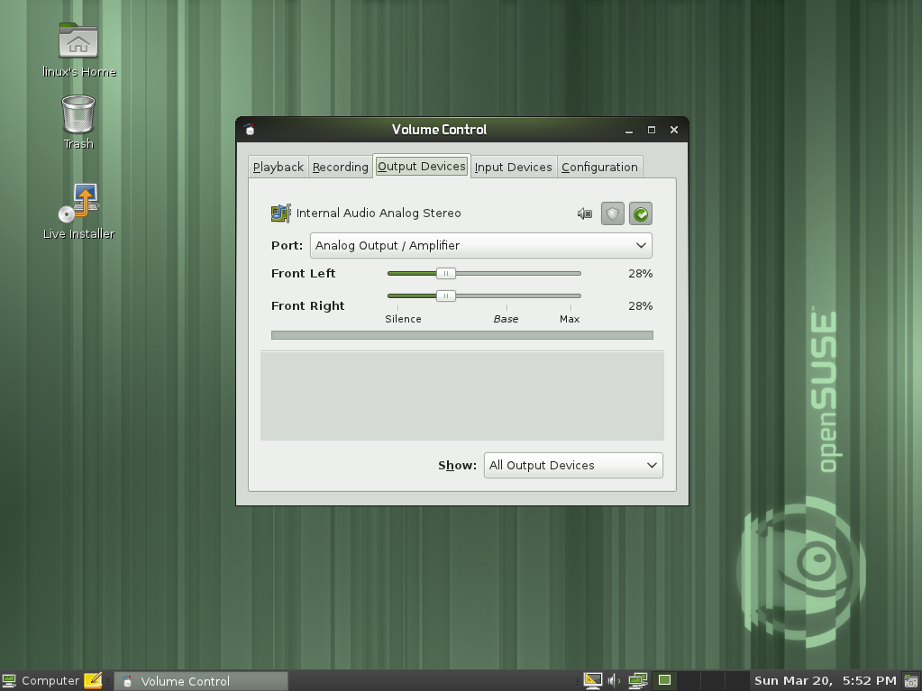 A los mandos del sonido se estrena por fin PulseAudio, eso sí, con la retaguardia bien cubierta por Alsa, por lo que si tenemos problemas con el primero, es seguro desactivarlo desde YaST o incluso desinstalarlo. ¿Por qué se ha puesto entonces? Aquí no hay respuesta a esa pregunta, pero en las pruebas realizadas no ha habido mayores problemas, excepto con Wine (GNOME incluye una aplicación para controlarlo; en KDE habrá que apoyarse en KMix, que no es lo mismo, pero no hay más -de momento-).