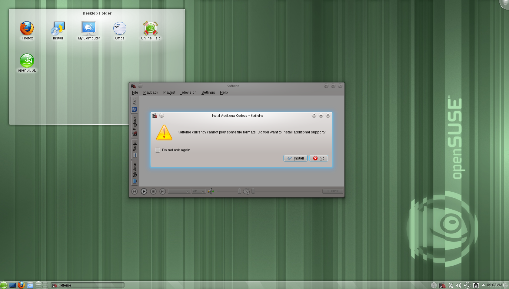Como hemos comentado, en cuestión de «aditivos» openSUSE viene muy bien preparada. Una vez instalado el sistema y con las actualizaciones de rigor ya disponemos de Flash, MP3, Java… Pero si no hemos añadido repositorios o instalado paquetes extra, seguiremos sin poder reproducir algunos formatos.