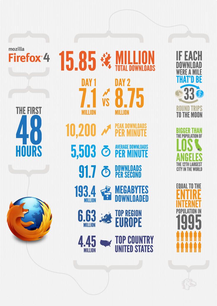 Os dejamos con la infografía desarrollada por Mozilla en la cual se puede ver fácilmente el éxito de este navegador a nivel de descargas.