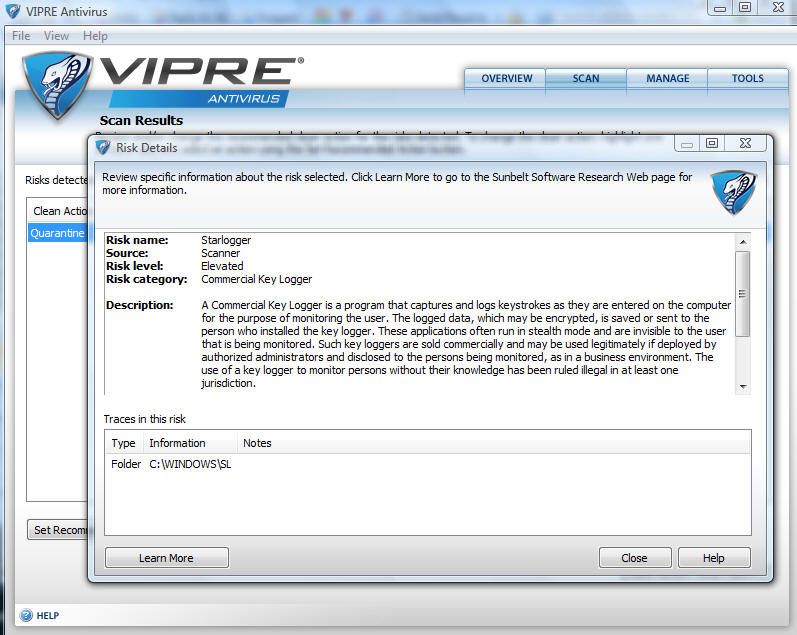 Tras investigar el asunto, se ha comprobado que todo el revuelo proviene de la detección de un falso positivo del antivirus VIPRE. Lo curioso del caso es la torpeza (o exceso de celo) de este antivirus al confundir una simple carpeta creada por la aplicación Windows Live para el soporte multi-idioma (SL en referencia al idioma esloveno) con el software espía (SL) StarLogger.