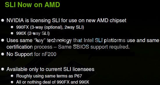 En concreto, NVIDIA desbloqueará su tecnología multigráfica en los chipset 990FX y 990X que alimentarán entre otros a los nuevos procesadores Bulldozer, los primeros con ocho núcleos de procesamiento que llegarán al mercado de consumo.