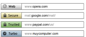 También hace uso del sistema de identificación del tipo de seguridad en una web mediante un cómodo icono visual: