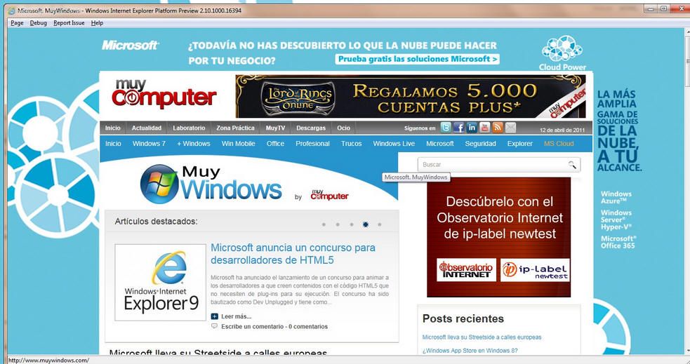 El gigante del software ha comenzado fuerte la conferencia de desarrolladores MIX 2011 que se celebra estos días en Las Vegas con la presentación de la Platform Preview 1 de la próxima versión de su navegador web, Internet Explorer 10.