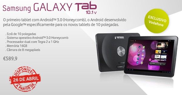 El nuevo tablet de Samsung con Android 3.0 Honeycomb está a punto de estar disponible en todo el mundo. Pero lo hará por lo visto primero en Portugal, porque Vodafone Portugal ya ha anunciado que el Samsung Galaxy Tab 10.1v estará disponible a partir de mañana por 590 euros.