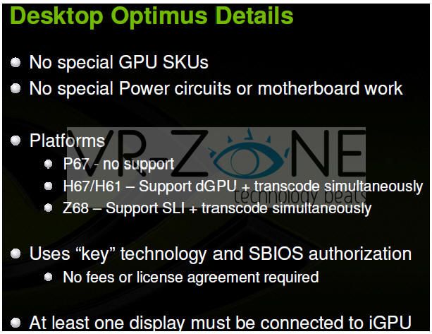 NVIDIA presentará en el Computex 2011 la tecnología Synergy, la versión para ordenadores de escritorio del Optimus de portátiles, permitiendo el cambio, funcionamiento y gestión entre gráficas integradas y dedicadas instaladas en la misma máquina.