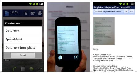 La aplicación nativa de Google Docs para Android facilita la búsqueda de contenido, la edición de documentos, el cambio rápido entre hojas de cálculo, la visualización de documentos, imágenes o archivos .pdf, la conversión a formatos Google Docs o compartir documentos con los contactos del terminal.