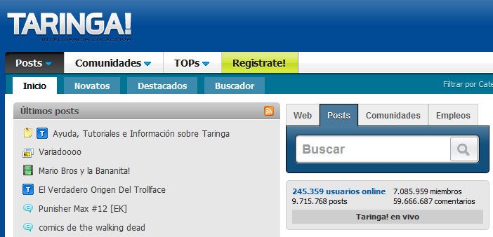 Taringa!, según se definen, es una comunidad virtual donde los usuarios comparten todo tipo de información a través de un sistema colaborativo de interacción. El portal se ha convertido en los últimos años en uno de los sitios más populares de habla hispana del sector de descargas.