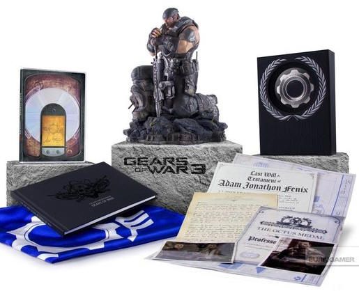 – Epic por 150 dólares: con todos los contenidos de la edición limitada, un libro de 96 páginas con artwork, fotografías y entrevistas, una edición limitada de la estatua de Marcus Fenix y un pack de pieles Infected Omen Weapon para las cinco armas iniciales en el modeo multijugador.