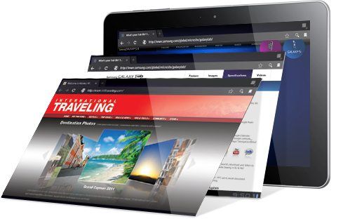 Navegador completo con soporte Flash. Galaxy Tab ofrece un sistema de navegación por pestañas con soporte de contenidos Flash y un sistema de zoom y adaptación muy eficiente. La navegación con el tablet será una experiencia similar a la de cualquier PC.