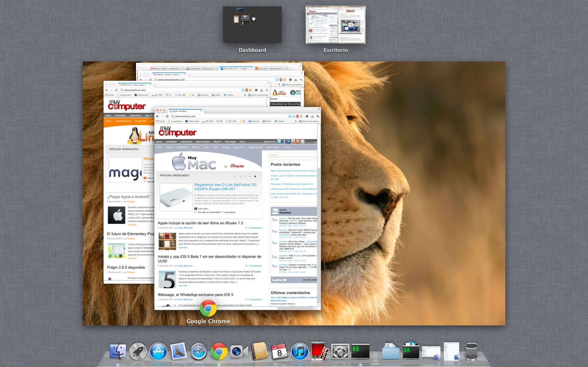 Otra de las grandes sorpresas de Mac OS X Lion es Mission Control, un componente que aúna las prestaciones de Dashboard, Exposé y Spaces permitiendo obtener una vista general de todo lo que tenemos en nuestro Mac.