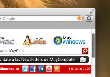 Este modo se activa con un pequeño icono de la esquina superior derecha de cada aplicación, que hará que desaparezca el panel superior de Mac OS X y que incluso la aplicación también elimine algunos de sus elementos supérfluos. Por ejemplo, en Safari desaparece la barra de marcadores, lo que hace que el espacio para la navegación sea prácticamente total.