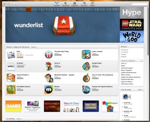 La Mac App Store, la tienda de aplicaciones que ya estaba disponible de forma separada en Snow Leopard, tiene aún mayor protagonismo en Lion, ya que Apple ha decidido integrarla de serie con características como las compras “In-app”, lo que permite a los desarrolladores ofrecer contenidos adicionales para sus aplicaciones.