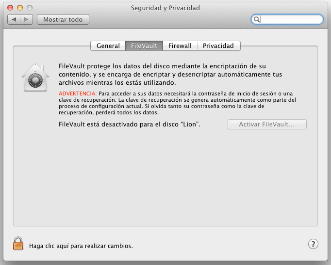 El apartado de la seguridad también ha sido tomado muy en cuenta en Lion, y se han mejorado algunas características importantes en este sentido. FileVault ofrece ahora un cifrado completo de disco con el algoritmo XTS-AES de 128 bits, y además se da soporte al cifrado de unidades de disco externas, una característica muy interesante para proteger nuestras unidades de backup.