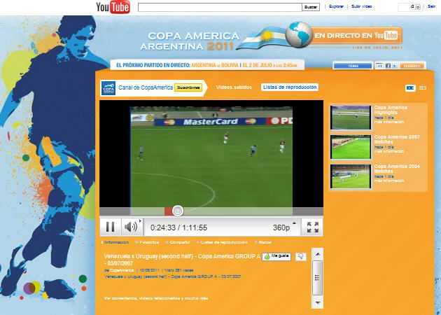 Traffic Sports y YouTube han anunciado su asociación estratégica para retransmitir en directo todos los partidos del torneo de Copa América 2011 a través de su canal de YouTube: www.youtube.com/copaamerica.