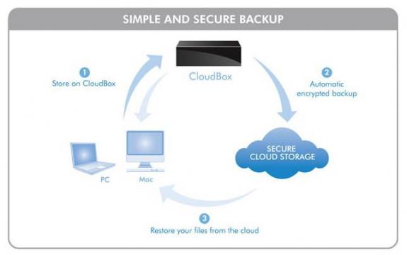 Externamente, el CloudBox no difiere de un disco duro externo con una carcasa de 400 gramos y un tamaño inferior a los doce centímetros. El aspecto diferenciador es la inclusión de una interfaz Gigabit Ethernet (10/100/1000).