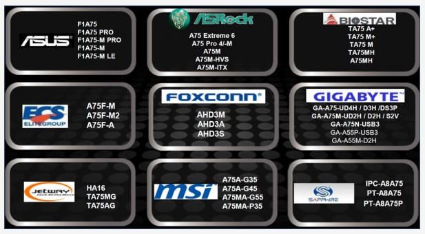 Los Serie A Llano utilizan nuevo socket FM1 incompatible con los zócalos AMD actuales por lo que necesitaremos nueva placa base para poder utilizarlos. Ya te presentamos las ASUS F1A75-V EVO y F1A75-V Pro aunque ya están en el mercado modelos de Gigabyte, MSI, Asrock, ECS y del resto de fabricantes mundiales de placas base.