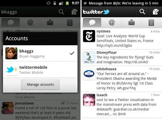 Twitter 2.1 para Android, múltiples cuentas y notificaciones push