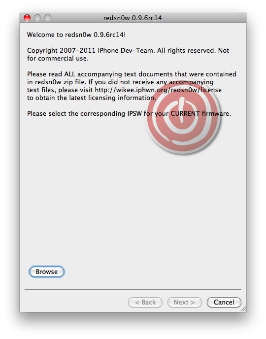 – Paso 2. Ejecuta RedSn0w 0.9.8b3 y pulsa la tecla Browse.