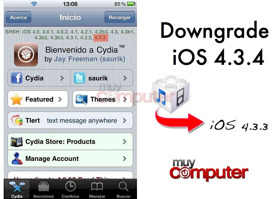 Haz downgrade iOS 4.3.4 a iOS 4.3.3 si tenías jailbreak hecho