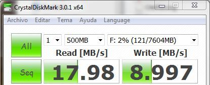 Sin embargo, según nuestros tests, no cumple con las expectativas que caben esperar de una tarjeta Clase 10, es decir promete una transferencia mínima de 10 Mbytes/s y si bien en lectura la tarjeta cumple sobradamente, en escritura no alcanza esa cifra.