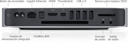 El Mac mini, diseñado sin unidad de disco óptica, puede acceder a las unidades ópticas de otros PC y Mac, además de funcionar con la unidad externa SuperDrive para el MacBook Air. Entre las opciones de configuración a medida se incluyen hasta 8 Gbytes de memoria, un disco duro más rápido a 7.200 rpm y una unidad de estado sólido de 256 Gbytes.