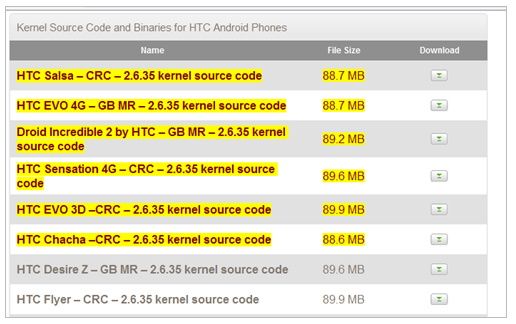 La compañía taiwanesa especializada en comercialización de dispositivos de movilidad ha liberado el código fuente de siete de sus terminales: Salsa, EVO 3D y 4G, Sensation, Chacha, Desire Z y Flyer.
