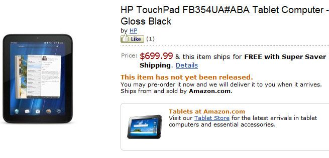 Amazon lista para reservar el HP TouchPad 4G por 700 dólares