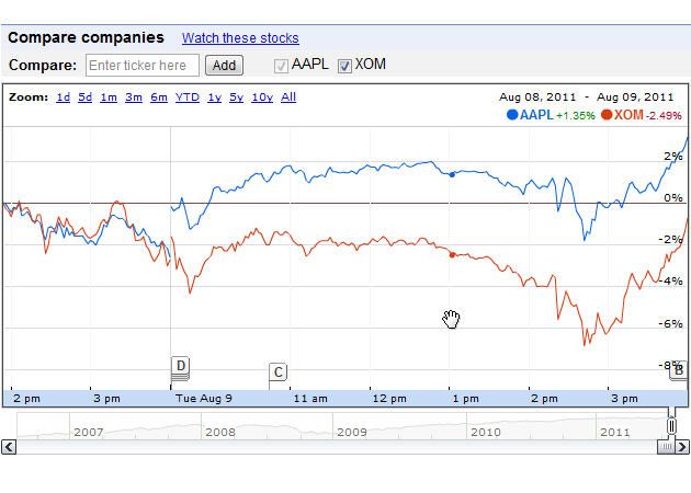 Esa ascensión llegó ayer a su punto álgido: Apple logró superar en capitalización bursátil a Exxon, la empresa que hasta ahora ocupaba el primer pusto en el mercado, aunque a lo largo del día una y otra se estuvieron quitando el puesto según la valoración de las acciones.