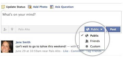 Uno de los cambios afecta a la disposición de las opciones de gestión de la privacidad, ahora directamente en el perfil, modificable para cualquier contenido y visualmente mucho más cercano mediante un menú desplegable permitiendo el acceso público, a amigos, personalizado o sólo para el usuario.
