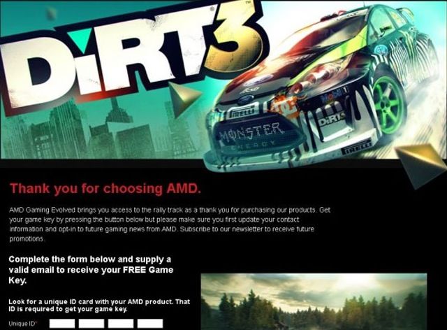Puede que hayas escuchado este fin de semana que las claves de activación de los cupones de descarga del juego DIRT 3 que se encuentran en algunos productos de AMD estén en riesgo. Las claves estaban alojadas en la web de una agencia de terceros, AMD4u.com, y no estaba en la web de AMD. Ni AMD ni los proceedores de Codemasters estaban involucrados.