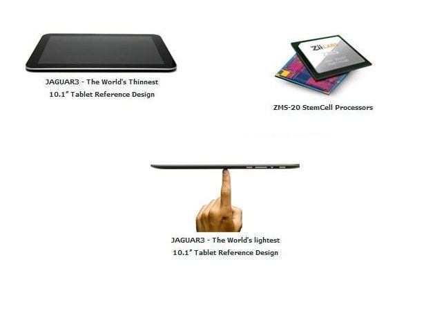 La compañía ZiiLABS acaba de mostrar lo que será un diseño de referencia para los OEMs del mercado tablet. Se llama Jaguar3 y es un tablet con un grosor de sólo 8,1 mm que puede montar el chip ZMS-20, doble núcleo a 1,5 GHz e incluso ZMS-40, con cuatro núcleos Cortex A9.