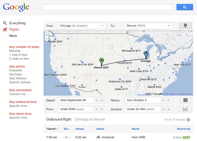 Google ha lanzado -inicialmente para Estados Unidos- su buscador de vuelos, compitiendo con servicios especializados como Orbitz o TripAdvisor a la caza de la ganga en la tarifa aérea mediante un simple clic.