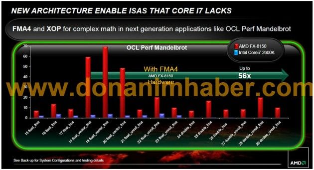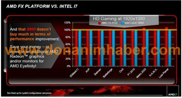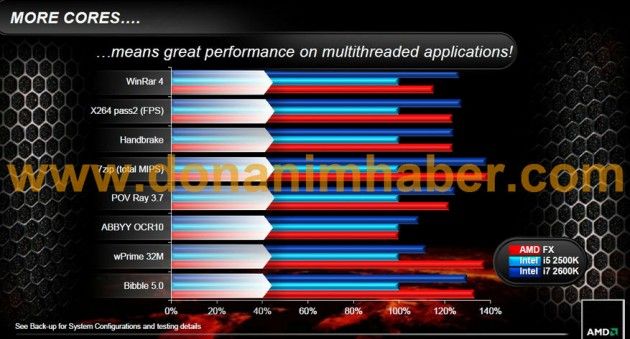 En los test, el FX-8150 superó al Sandy Bridge Core i7-2600K hasta en un 70 por ciento en algunas pruebas y fue capaz de mantener el tipo frente a un LGA-1366 Core i7-980X, el séxtuple núcleo de Intel, segundo más potente de todo el mercado de consumo.