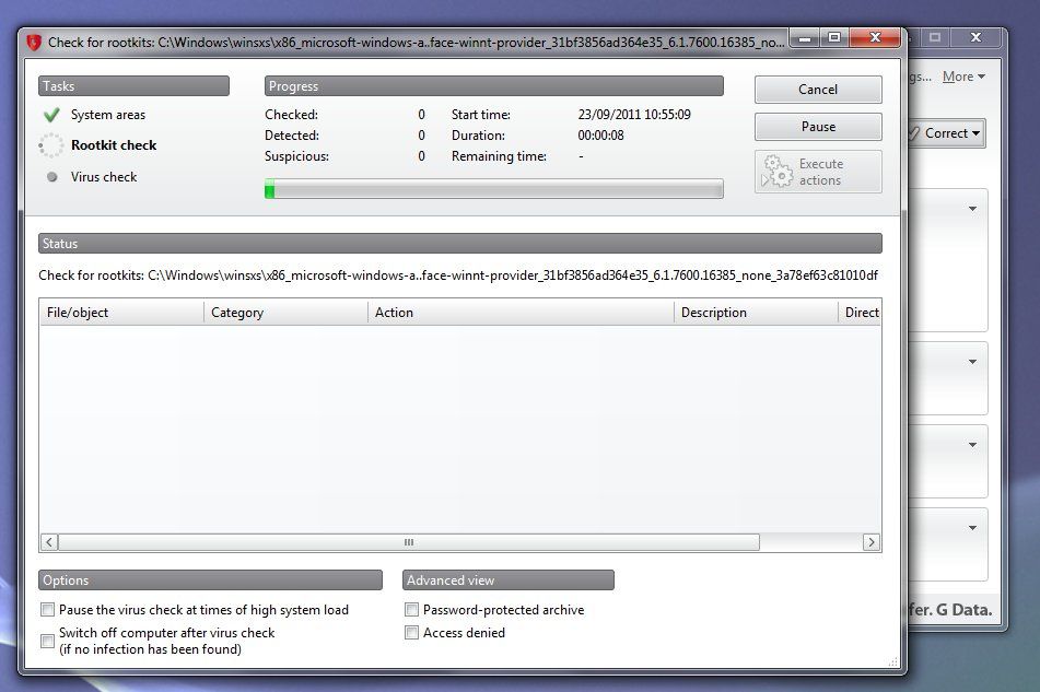 La base de esta solución de seguridad se mantiene: un doble motor de detección de antivirus ( las últimas revisiones de Avast! y BitDefender) con actualizaciones periódicas junto a OutbreakShield, el sistema de protección en tiempo real, hacen de G Data TotalCare 2012 uno de los productos de seguridad más eficaces del mercado. Como es habitual, realizamos varias pruebas con la suite de G Data obteniendo una tasa de detección del 100%, incluso forzando una infección con el adware más reciente vía web y por correo electrónico. Además, la tasa de falsos positivos ahora es mínima (sólo detecto un archivo de nombre muy extraño como posible amenaza) y en todo momento pregunta al usuario qué hacer antes de actuar para evitar posibles conflictos de software con determinadas aplicaciones. En todo caso, el programa siempre deja que sea el usuario el que tome la decisión final si se encuentra algún archivo sospechoso.