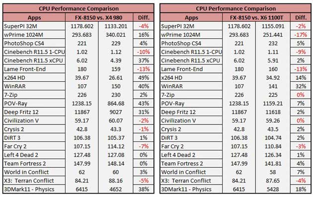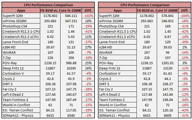 Los análisis indican que los benchmark previos publicados por AMD en los que los Bulldozer llegaban a plantar cara a los Core i7 980X de Intel eran demasiado optimistas. Todas las reviews indican datos contradictorios de rendimiento del FX-8150, sobresaliente en algunos apartados pero discreto en otros escenarios.