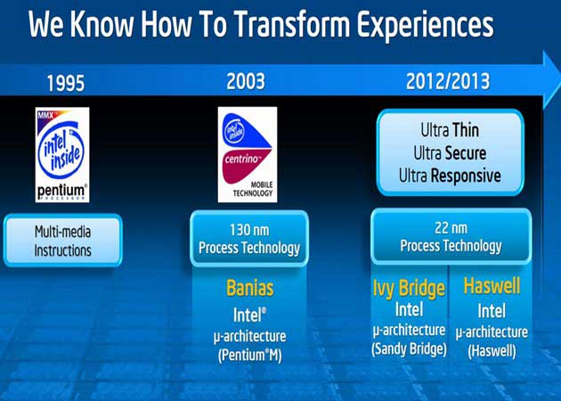 Ya en 2013 llegaría la nueva plataforma Haswell, avanzando a tecnologías de fabricación de 22 y 14 nanómetros y con nueva arquitectura : múltiples núcleos de procesamiento gráfico en la pastilla funcionando de forma similar a tecnologías SLI o CrossfireX.