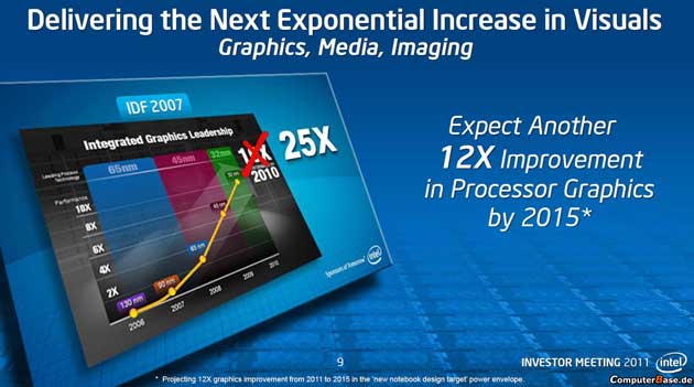 Más contenidos serán los precios para la segunda plataforma Ivy Bridge con lanzamiento en enero de 2012. Una evolución de los Sandy Bridge actuales para sobremesas y portátiles manteniendo compatibilidad con el socket LGA-1155. Como los actuales diseños Sandy Bridge, tendrán la GPU y la controladora de memoria integrada en la die y avanzarán en rendimiento y mejora de consumo.