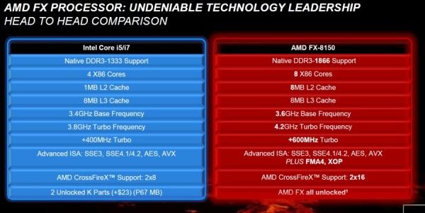 A continuación detallamos la línea de modelos que AMD lanzará basándose en esta arquitectura, en el momento del lanzamiento sólo estaban disponibles los modelos FX-8150, FX-8120 y FX-6100. Sin embargo habrá una completa línea de producto cubriendo todas las necesidades del sector: