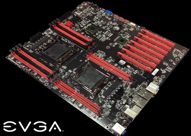 Destinada a usuarios entusiastas y estaciones de trabajo, este modelo de EVGA tiene un factor de forma HPTX y acabado clásico en la compañía en colores rojo y negro. Además del doble socket, incluye doce ranuras de memoria RAM DDR3, ocho para la CPU primaria y su cuádruple canal de memoria y cuatro más para la segunda CPU.