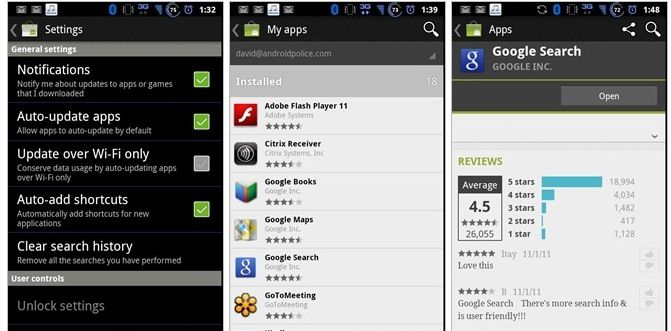 Además de ello han utilizado una fuente de texto de tamaño más reducido lo que permite una visualización más completa de información en pantalla. El icono del Market también ha sido renovado. Ahora podemos buscar aplicaciones mediante voz y también votar mediante un sistema de estrellas las aplicaciones.