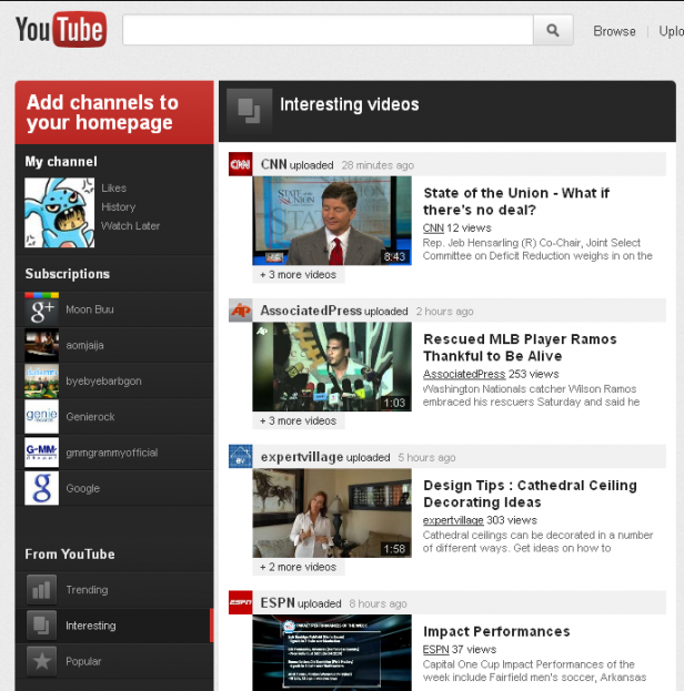 Google comenzó con Google+ una renovación y unificación estética de todos sus servicios. Ejemplo de ello es el nuevo look de Gmail o bien de Google Docs o Reader. En esta ocasión Google ya ha comenzado a probar el nuevo diseño de manera aleatoria entre sus usuarios y ta tenemos pruebas de cómo será YouTube.