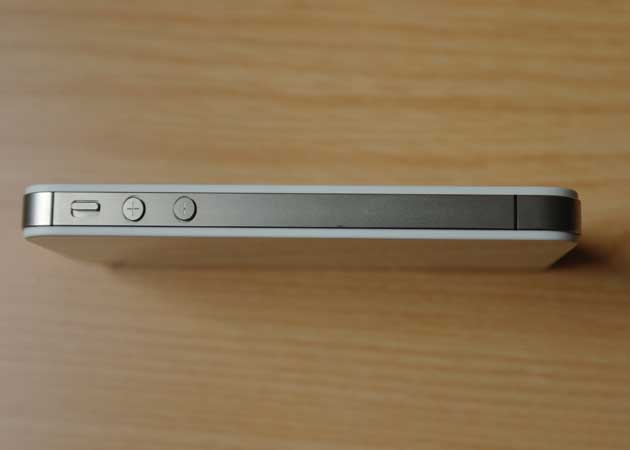 Lateral izquierdo del iPhone 4S con el interruptor de silencio y los botones de subir y bajar el volumen.