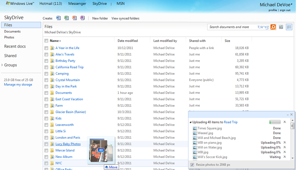 SkyDrive es el nombre con el que Microsoft bautizó su servicio de almacenamiento en la nube, 25 Gbytes gratuitos. La mayoría de mejoras que ha recibido el servicio son la respuesta de Microsoft a las peticiones de los usuarios.