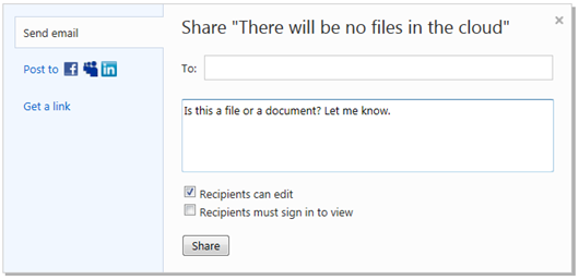 La primera mejora es la posibilidad de compartir contenidos de manera sencilla frente a la manera tradicional que requería compartir vía mail archivos. Además ahora cuando se trabaja en un archivo Word Web App, el usuario puede compartir desde la propia aplicación ese archivo sin tener que organizar ese archivo en una carpeta compartida.