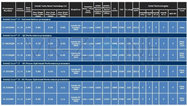 El más potente Ivy Bridge de la línea portátil será el Core i7-3920XM que trabajará a 2,9 GHz -200 MHz más que el chip estandarte de la gama Sandy Bridge-E Core i7-2960XM.