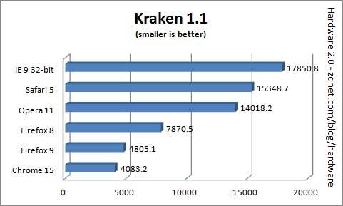 Kraken 1.0, otro benchmark JavaScript desarrollado por Mozilla basado en el SunSpider pero con mejoras: