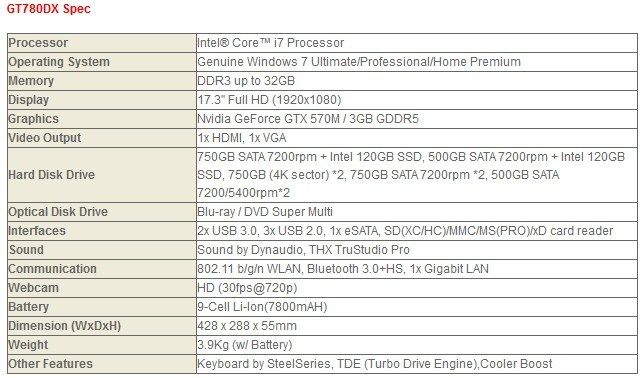 Os dejamos a continuación una lista con las especificaciones técnicas de MSI GT780DX:
